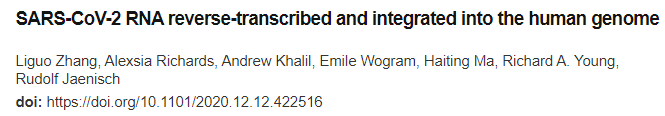 24. SARS-CoV-2 RNA reverse-transcribed and integrated into the human genome:  biorxiv, December 12, 2020 ↩︎