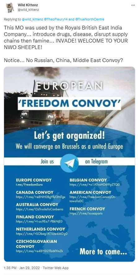 Are Russian Actors involved? Today, media suggested that “Russian Actors” are behind “Truckers for Freedom” and they weren’t too far off target. This is one time we all should be praying that this is “Fake News” but unfortunately it is not. The “Freedom Convoy” is being mobilized not just in Canada but in other Western Nations. And with it will come disruptions in supply chains world wide: food, medicine, fuel, water, medical supplies etc. This will be a dark winter for all freedom-loving nations. The West will fall!